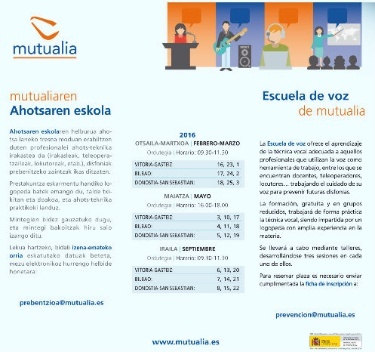 Mutualia ha abierto el plazo de inscripción para la Escuela de la Voz 2016. A lo largo del año, se realizarán un mínimo de tres convocatorias en Bizkaia, Araba y Gipuzkoa se ampliará la oferta horaria formativa.