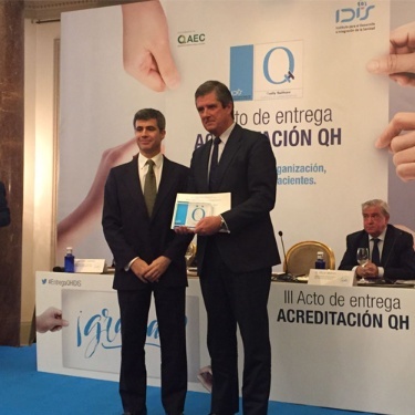 Hoy 8 de Noviembre de 2016, Mutualia recibe de manos del Instituto para el Desarrollo e Integración de la Sanidad (IDIS) un nuevo galardón: la Acreditación QH + 2 ESTRELLAS, en reconocimiento al esfuerzo realizado por la mutua con la calidad asistencial y la mejora continua.