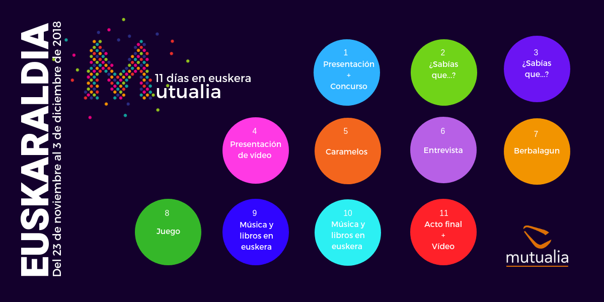 Esta es la agenda de actividades que ha preparado el equipo de Euskaraldia de Mutualia para estos 11 días. ¡Estamos preparadas para el reto!