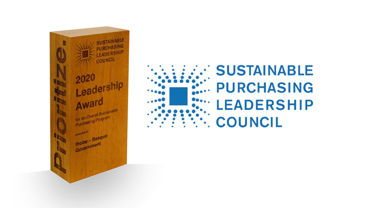La organización estadounidense sin ánimo de lucro “SUSTAINABLE PURCHASING LEADERSHIP COUNCIL (SPLC)”, cuya misión es apoyar y reconocer el liderazgo hacia la transición sostenible de compras, ha premiado al Programa de Compra Publica Verde del Gobierno Vasco como mejor Administración Pública en materia de compra sostenible.