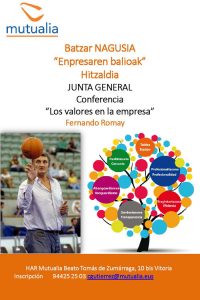 13:30 «Los valores en la empresa» a cargo de D. Fernando Romay.