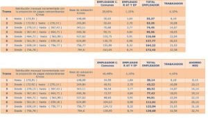 En estas tablas ya se han contemplado los nuevos cambios en el porcentaje de cotización de quien emplea