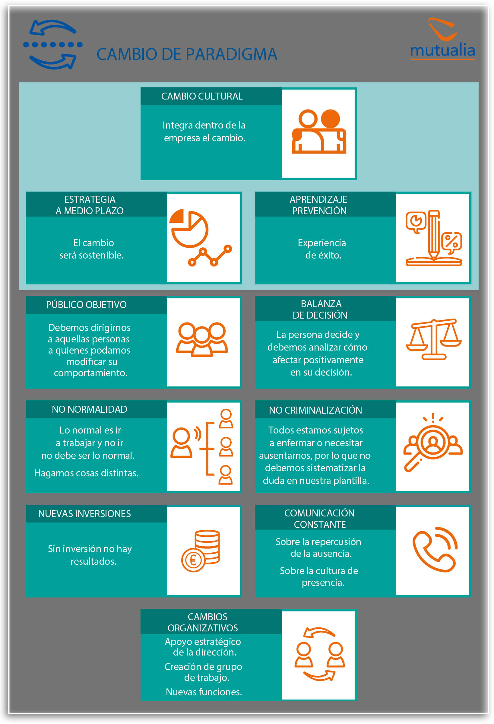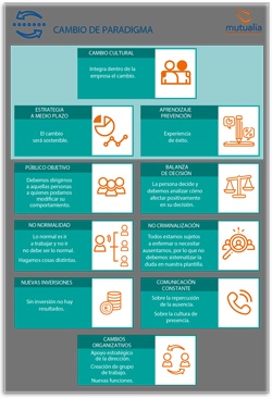 En Mutualia apostamos por desarrollar un Entorno Laboral Saludable, que conseguiremos si trabajamos conjuntamente la vía del bienestar de las personas junto con el bienestar de la empresa. Se trata de incorporar un nuevo paradigma a la hora de gestionar las ausencias en las empresas, un cambio cultural que deje de poner el foco únicamente en la persona que se ausenta y que se centre en qué pueden hacer las organizaciones para mejorar la relación con sus empleados y empleadas.