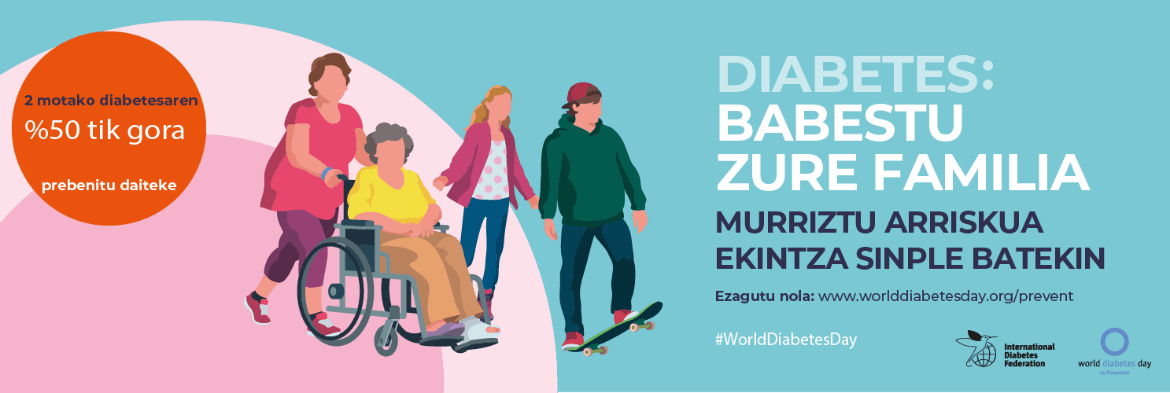 Gaur, azaroak 14, Diabetesaren Mundu Eguna ospatzen da “Babestu zure familia” lelopean. Diabetesaren jatorria, sintomak, tratamendua eta gaixotasunari lotutako arazoak ezagutaraztea du helburu.