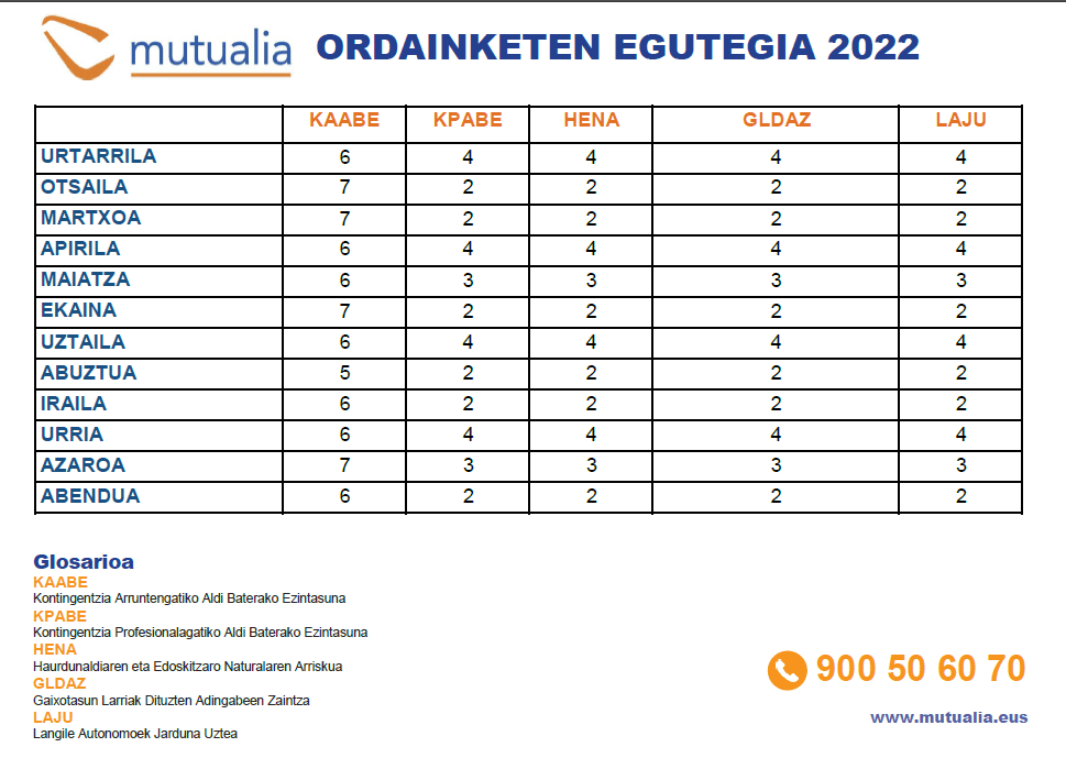Jarraian, Mutualiak kudeatzen dituen prestazioak ordaintzeko egutegia azalduko dizuegu: