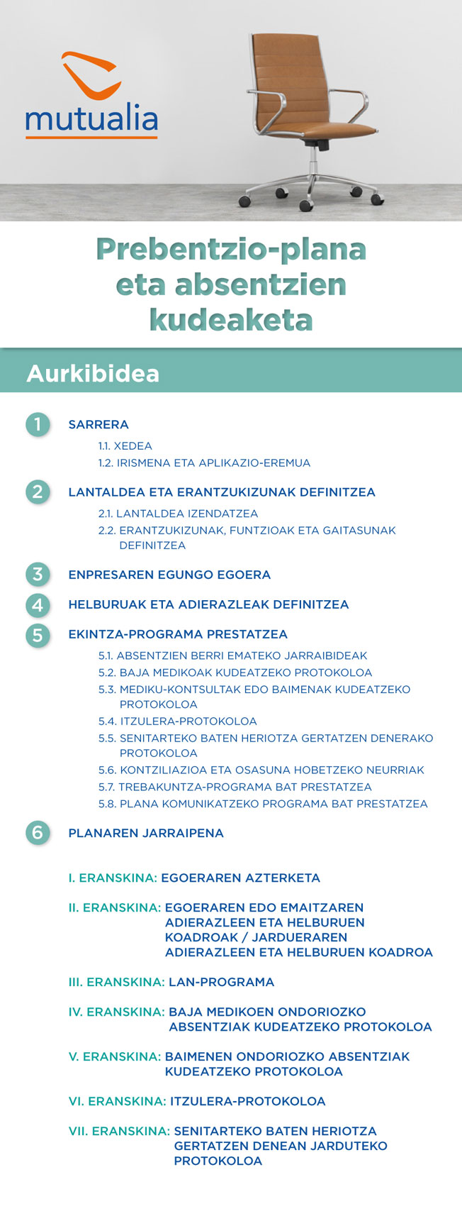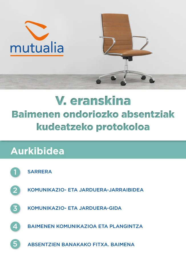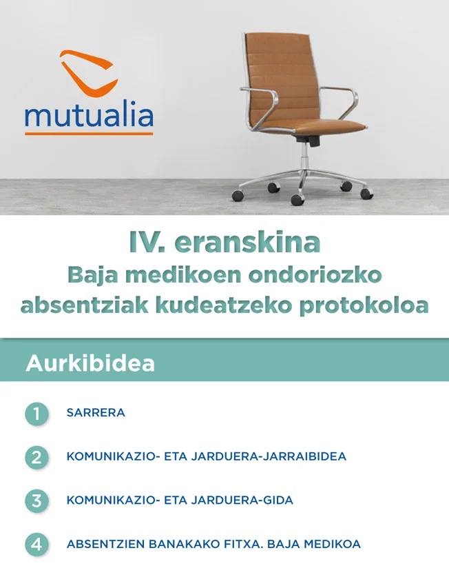 Absentziak prebenitzeko eta kudeatzeko plana, protokoloak edo absentziak kudeatzeko tresna interesatzen bazaizu, jarri harremanetan zure kudeatzailearekin; pozik emango dizu behar duzun guztia.