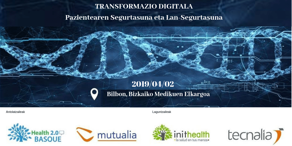 Apirilaren 2an, Health 2.0 Basquek eta Mutualiak, Tecnalia eta Inithealth-ekin (Grupo Init) elkarlanean, antolatu duten “Transformazio digitala pazientearen segurtasuneko eta lan-segurtasuneko prozesuetan” doako jardunaldia izango da Bilbon, Bizkaiko Medikuen Elkargoan.