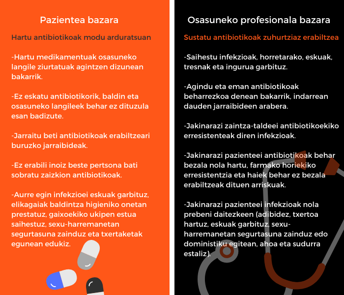 Antibiotikoen aurkako erresistentzia, gaur egun, osasun publikoaren mehatxurik nagusietako bat da. Oso garrantzitsua da guztiek, bereziki osasun adituek, elkarrekin lan egitea, mehatxu handi hori geldiarazteko.