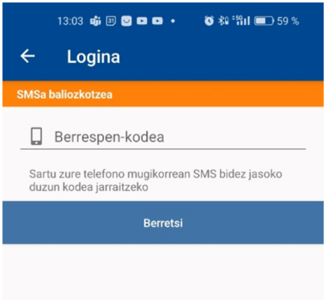 Bi urratseko egiaztapena segurtasun-kode bat bidaliz egingo da, SMS bidez.