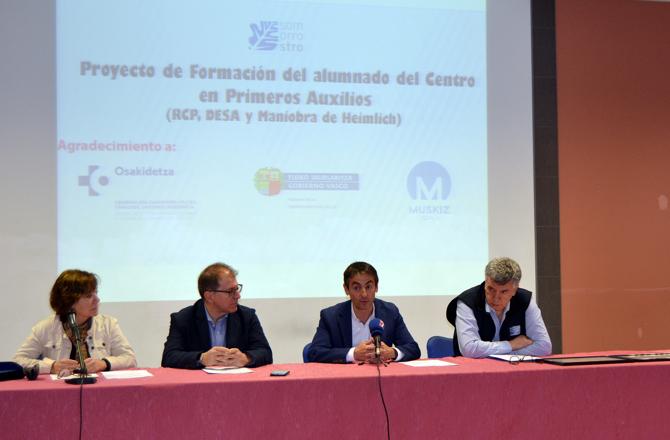 Horretarako, honako eragile hauekin aritu ginen lankidetzan: Osakidetza, laneko arriskuen prebentziorako heziketa-zikloko ikasleak eta irakasleak, eta Muskizko Udala. Denen artean, zentroko 92 taldeak trebatu zituzten proiektuak iraundako ikasturteetan, proiektuak berak jarraitutasuna eskatzen zuelako. Pandemia iritsi zenean, ordea, bertan behera utzi behar izan genuen egitasmoa, eta “standby” egoeran dago orain; hala ere, ahal bezain laster berrabiatuko dugu prestakuntza.