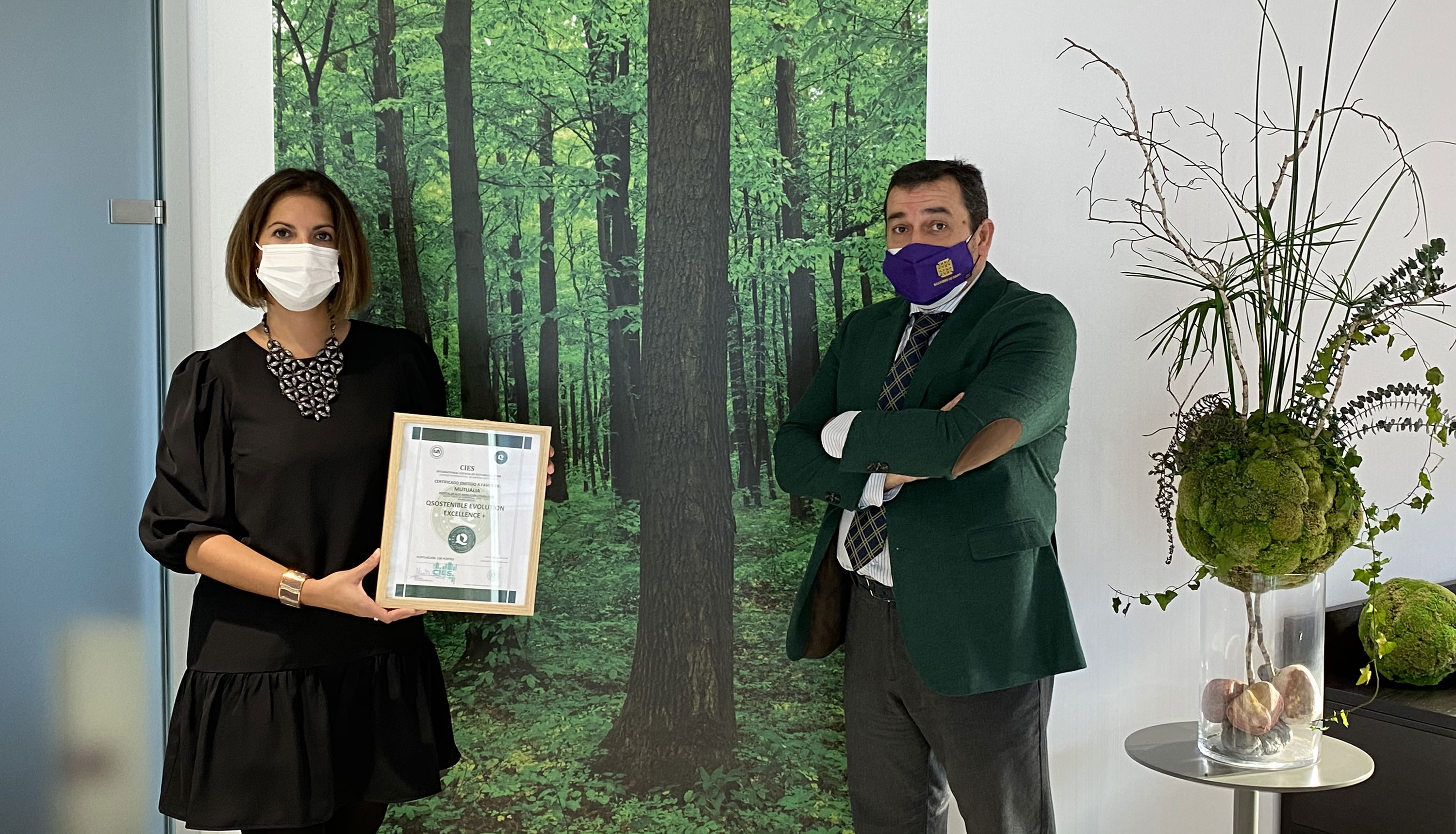 Ziurtagiria Mutualiaren Erabakimen Handiko Ospitalean bertan banatu zen, Gasteizen. Ekitaldian, Antonio Montañok, Enpresa Iraunkorraren Nazioarteko Kontseiluko (CIES) presidenteak, Q Sostenible Evolution Excellence Plus zigilua eman zion Marta Barredo Mutualiako 2. lehendakariordeari.