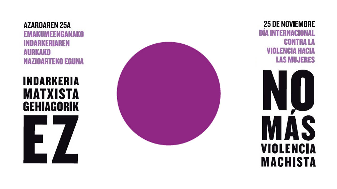 Mutualiak bat egin du Emakumeen Kontrako Indarkeriaren Aurkako Nazioarteko Egunarekin. Beste urte batez, A25a iritsi da eta datuek argi adierazten digute arazoa indarrean dagoela. Ez dira garapen-bidean dauden herrialdeen datuak, Euskadiri buruz hitz egiten ari gara: 3.708 emakume izan dira genero indarkeriaren biktima, 2018ko epe berean baino %2 gehiago.