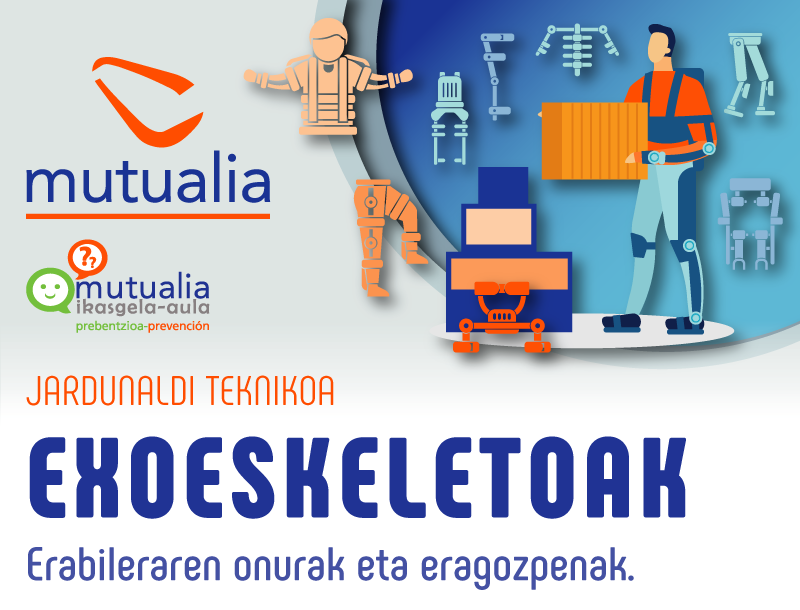 Mutualiak jardunaldi hau aurkezten dizue, zeinean exoeskeletoen arloko adituek haien erabileraren onurak eta eragozpenak azalduko baitituzte: zer hartzen den exoeskeletotzat, zer motatako exoeskeletoak dauden eta zer lanetan komeni den erabiltzea.