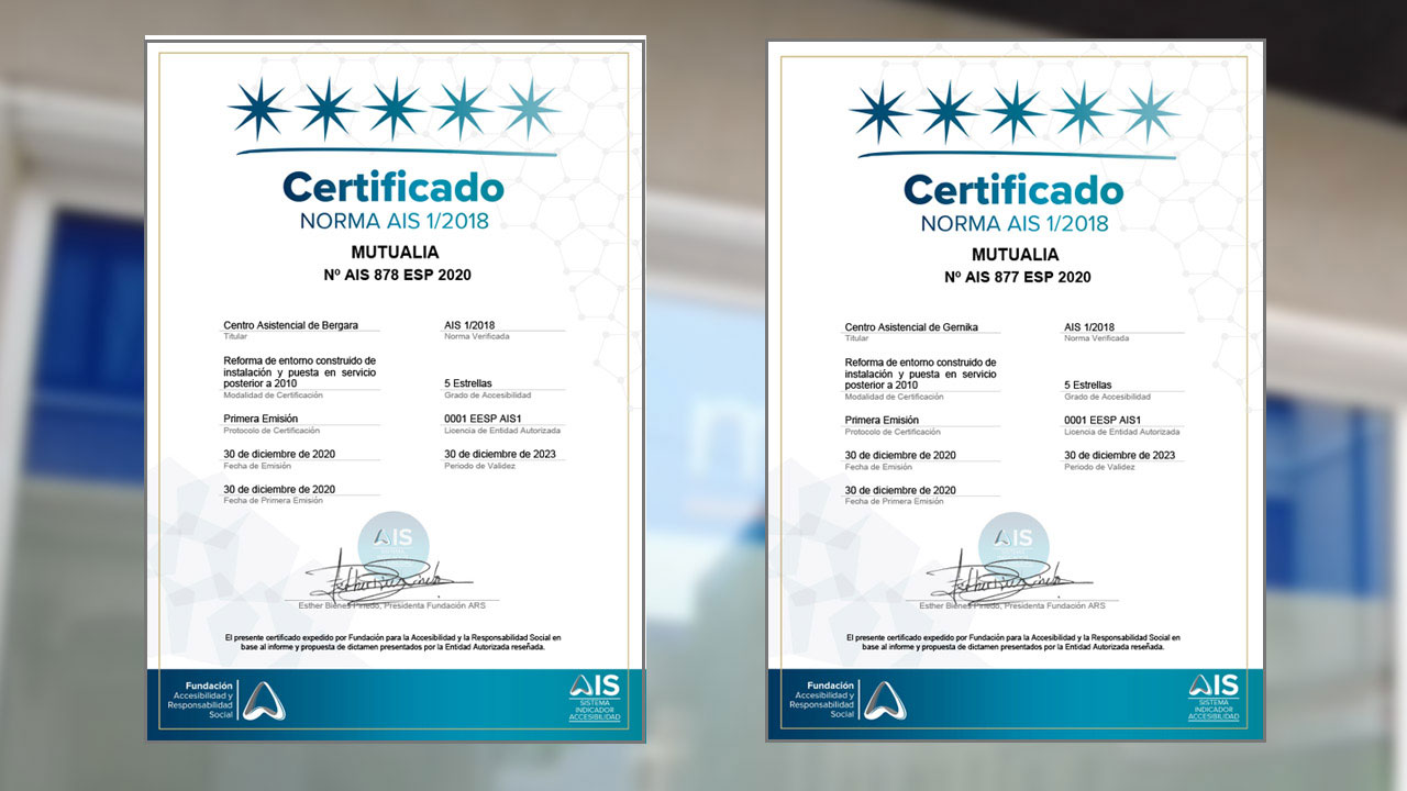 Gure osasun zentro berriek irisgarritasuneko AIS egiaztagiria lortu dute; maila gorena erdietsi dute, gainera: 5 Izar.
