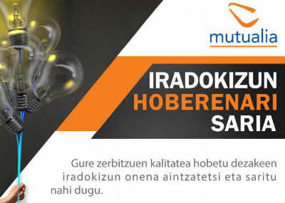 Mutualiak VII. urtez antolatu du Iradokizun Hoberenari Saria. Lehiaketaren xedea da gure zerbitzuen kalitatea hobetzen lagunduko digun urteko ideiarik onena aitortzea. Azken edizioaren irabazlea JOSE CRUZ GONZALEZ MURUAren iradokizuna izan da, Kutxabankeko langilea.