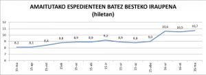 Mutualiaren kasuan, jarduera uztearekin lotuta aitortutako espedienteen batez besteko iraupena ia 11 hilabetekoa da gaur egun, gehiengoa 12 hilabete izanik.