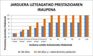 Bi kasuetan, jarduera uzten den hilabetearen hurrengoko lehen egunetik egingo da ordainketa, eta horren iraupena Gizarte Segurantzari estaldura horrengatik kotizatutako hilabete-kopuruaren araberakoa izango da. Horrez gain, 60 urte baino gehiagoko eskatzaileei hobari gehigarria emango zaie; hala, kotizazio-epea berdina izanda ere, iraupen luzeagoa izango du haien prestazioak.