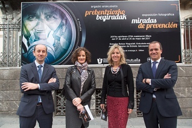 Bizkaiko Batzar Nagusietako presidente Ana Otadui andreak, Osalaneko zuzendari nagusi Alberto Alonso jaunarekin eta Mutualiako Eraketa Zuzendaria Jorge Arbeiza jaunarekin batera, «Prebentziozko Begiradak» erakusketa inauguratu zuen, Mutualiak apirilaren 28a, laneko segurtasunaren eta osasunaren munduko eguna, nabarmentzeko antolatu dituen ekitaldien artean.