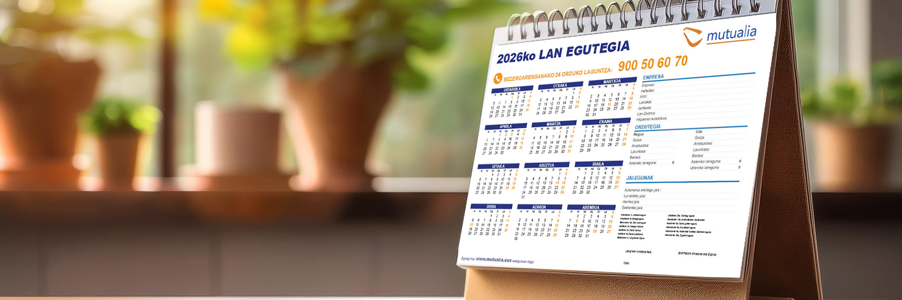 Mutualiak lan egutegi berria prestatu du 2026. urterako. Bertan, jaiegunen zerrenda dago jasota. Mutualiaren egutegia PDF betegarriaren formatuan dago eskuragarri , eta buletinak argitaratu ostean prestatu da, bertan baitaude jasota 2026. urteko jaiegunen zerrendak. Hauek izango dira lan-egutegiak Euskadin 2026an izango dituen hamabi jaiegunak: Lanaldi horiei beste bi jaiegun gehitu behar zaizkie, Lan eta Gizarte