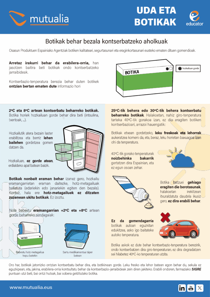 Udan, tenperatura igo ahala, ezinbestekoa da ondo ezagutzea Osasun Produktuen Espainiako Agentziak botiken kalitateari, segurtasunari eta eraginkortasunari eusteko ematen dituen gomendioak.